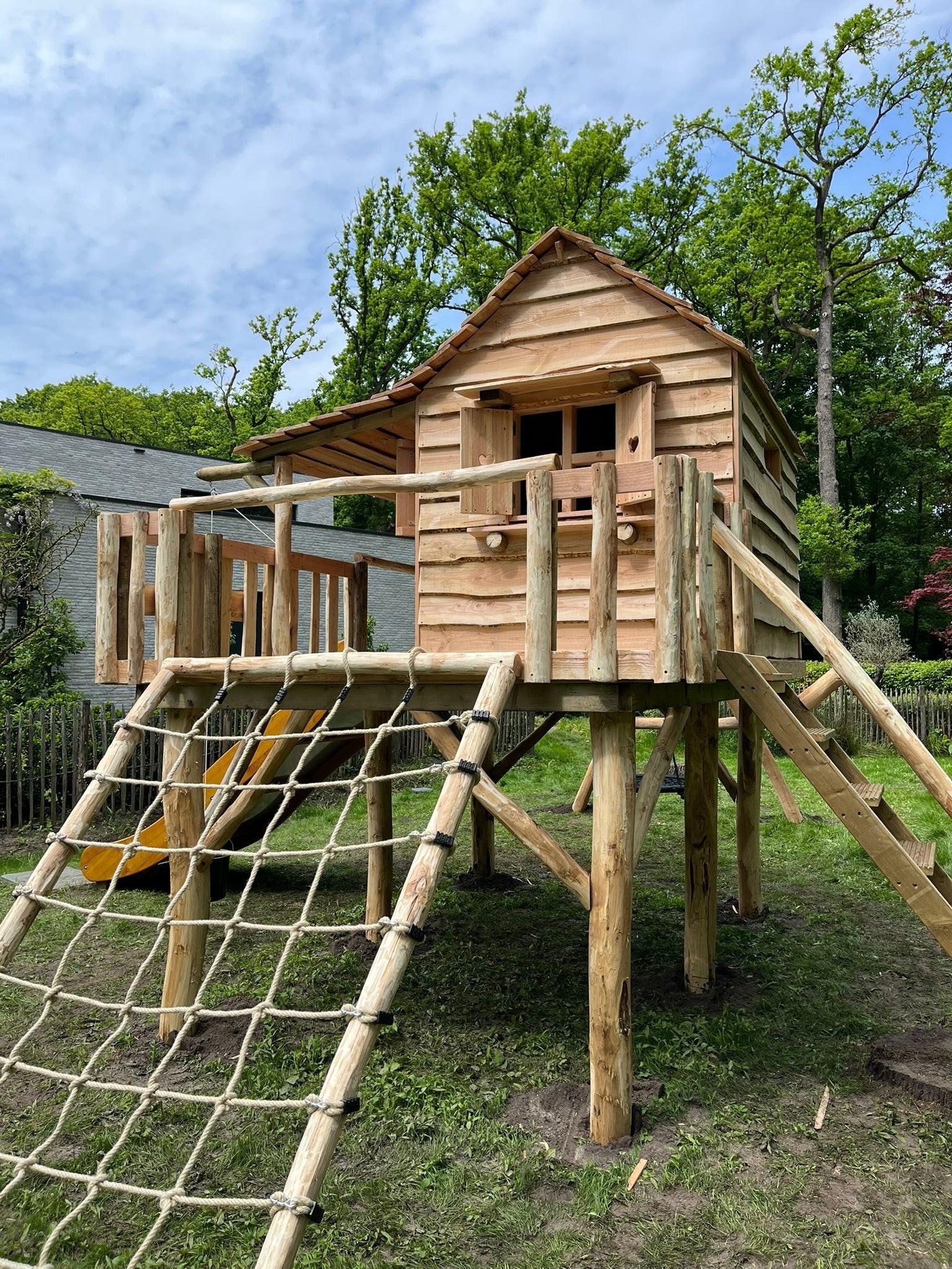 We leveren en monteren het speelhuisje volledig zelf, op de afgesproken dag, in jouw tuin. Dat geldt voor heel Nederland, België en Duitsland. Transportkosten worden vooraf met je doorgenomen.