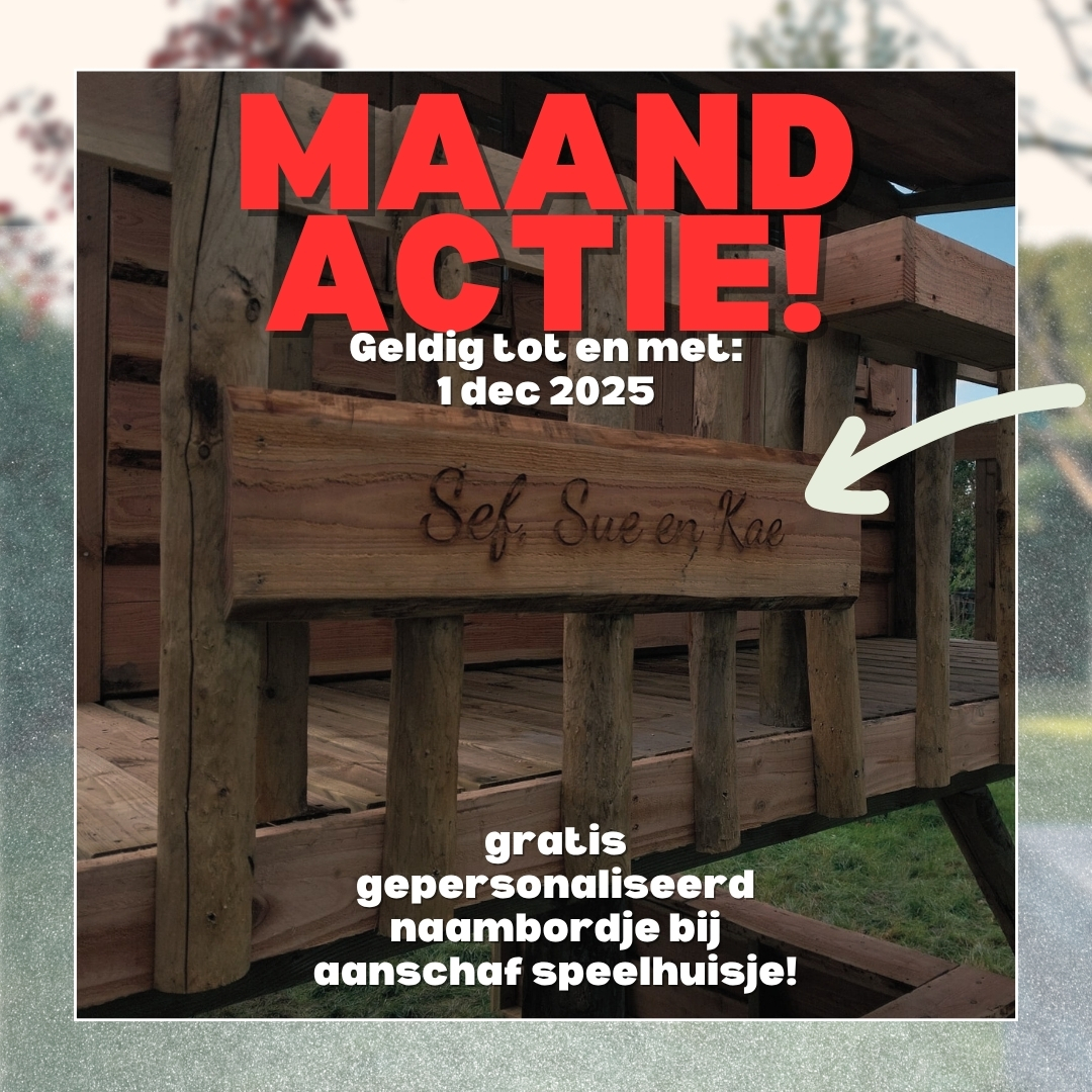 Bij aankoop van een speelhuisje, tijdelijk een gepersonaliseerd naambordje cadeau!