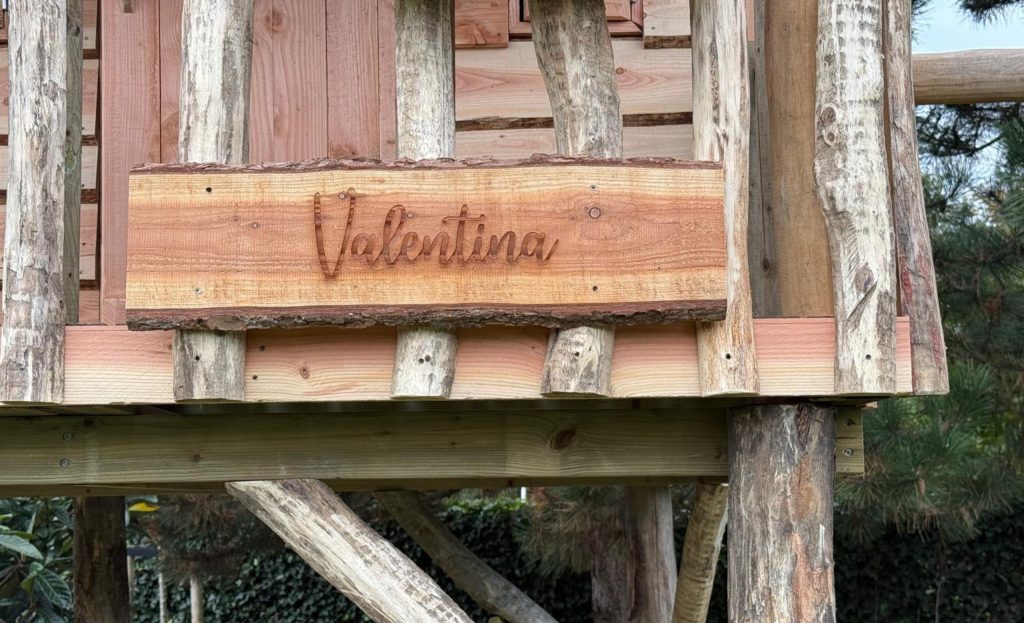 Laat de naam van je kind prachtig graveren op een stijlvol houten naambord. Een echte finishing touch die het speelhuisje verandert in hún eigen plekje